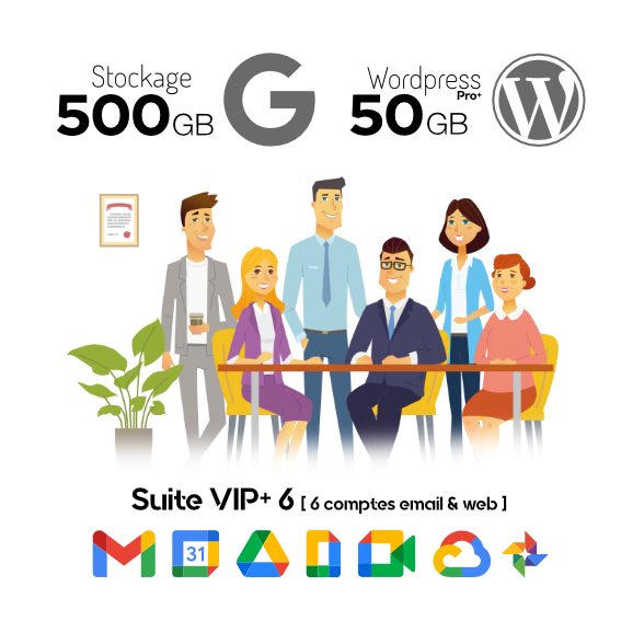 - Six comptes Google Workspace incluant quatre emails personalisés @buisson.fr sur la plateforme Gmail. Stockages (15Gb, 30Gb, 150Gb ou 500Gb)
